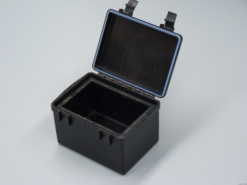 Skrzynia z tworzywa sztucznego, wodoszczelna i pyłoszczelna. Wyposażona w silikonową uszczelkę wokół pokrywy. Odporna na wstrząsy i uderzenia. Pasek na ramie. Zawias na całej długości dekla. Wewnątrz dodatkowe punkty mocowania.