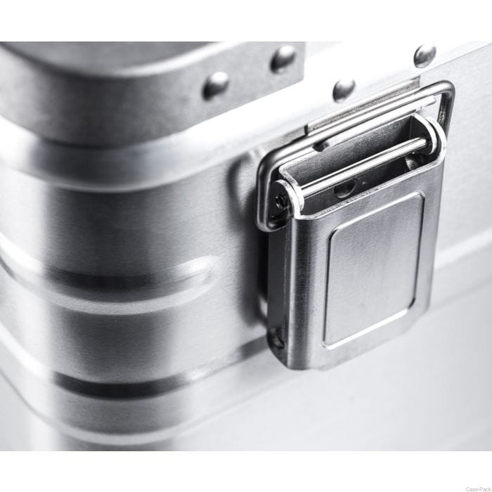 Skrzynia wykonana z aluminium o grubości 1mm. Zapewnia ochronę przed pyłem, kurzem oraz wodą rozbryzgową – stopień ochrony IP54. Wyposażona w sprężynowe uchwyty oraz nylonowe paski przynitowane do pokrywy, umożliwiające jej otwarcie do 95-100°. Zastosowane narożniki pozwalają ustawić jedną skrzynie na drugiej.